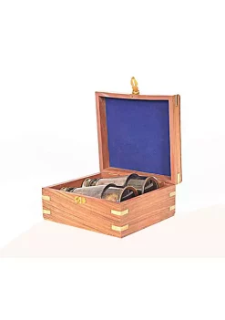 Old Modern Handicrafts Home Decorative Binocular with Leather Overlay in Wood Box