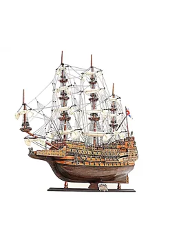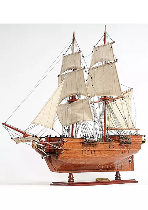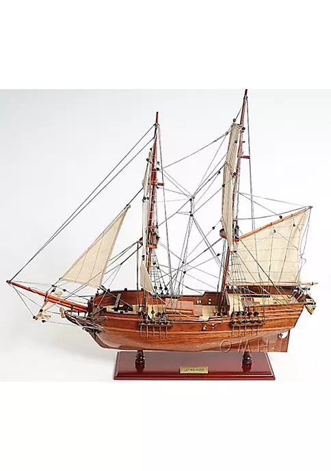 This is a high quality Fully assembled model of the original 90-ton merchant sloop Lady Washington that became the first American vessel to reach Japan in an unsuccessful attempt to move some unsold pelts. Master craftsmen using historical photographs, drawings or original plans meticulously handcraft these highly detailed wood models from scratch. They are built to scale with high-grade wood such as: western red cedar, rosewood, and mahogany. They are 100% hand built individually using plank-on-frame construction method and are similar to the building of actual ships. Each model requires hundreds of hours to finish and must go through a demanding quality control process before leaving the workshop. This beautiful Lady Washington model features plank on frame and two decks. The front bowsprit and two large masts are connected securely using advanced rigging and lines painstakingly knotted and fastened by hand. Each yard has an attached hand-stitched unfurled sails made of fine linen. Metal anchors and a wooden rudder with metal propeller are visible on the front and rear of the ship. On the deck, there are authentic hand-built lifeboat with ribs and planks, wooden cabin, wooden crane and many other spectacular ornaments. This model comes standard with a solid wood base and brass nameplate. It’ll make a perfect gift for home or office decorator, boat enthusiast or passionate collector. Master craftsmen using historical photographs, drawings or original plans meticulously handcraft these highly detailed wood models from scratch. This beautiful Lady Washington model features plank on frame and two decks. This model comes standard with a solid wood base and brass nameplate. Dimension: 25″L x 5.5″W x 26″H